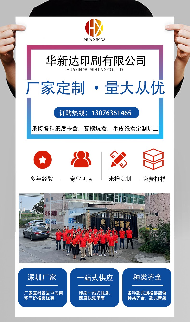 華新達(dá)印刷專業(yè)提供:各種包裝印刷、包裝盒印刷、逆向UV包裝盒印刷;包裝印刷配有自動粘合機(jī),自動粘窗口,自動裱盒機(jī),各種工藝成熟,質(zhì)量可靠。是您印刷包裝盒最佳拍檔。專業(yè)生產(chǎn)加工各種包裝盒。