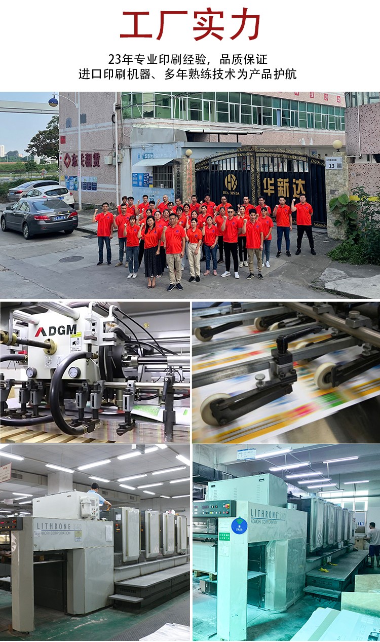 品質(zhì)把控:經(jīng)過(guò)二十幾年的沉淀積累,我司已建立完善的組織架構(gòu),從來(lái)料到出貨配套全檢,目前擁有世界先進(jìn)配套印前,印后設(shè)備,多臺(tái)德國(guó)羅蘭全開(kāi)、對(duì)開(kāi)羅蘭6+1、高寶162、海德堡XL105、日本小森機(jī)五色對(duì)開(kāi)印刷機(jī),采用印刷前CTP色彩管理出版印刷技術(shù),配套過(guò)膠、裱坑、啤、燙,粘盒等后道設(shè)備,擁有200多名專業(yè)技術(shù)印刷團(tuán)隊(duì)。